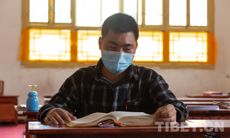 圖為索朗江白正在誦讀《四部醫(yī)典》 攝影:趙耀