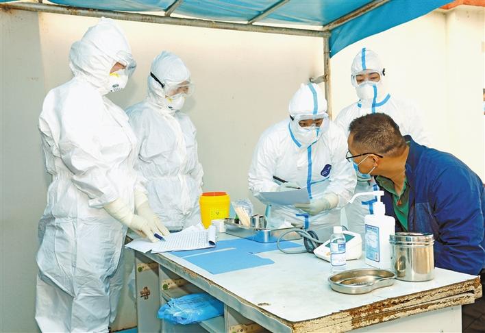 為了提高醫(yī)務(wù)人員在突發(fā)公共衛(wèi)生事件中應(yīng)急處置能力,確保一旦發(fā)生突發(fā)疫情,能夠“拉得出、打得響、處置好”,把疫情控制在最低限度,最大程度保護人民群眾身心健康與生命安全,近日,西藏拉薩市墨竹工卡縣人民醫(yī)院醫(yī)療集團舉行實戰(zhàn)背景條件下的突發(fā)公共衛(wèi)生事件應(yīng)急演練。圖為演練現(xiàn)場。記者 裴聰 攝