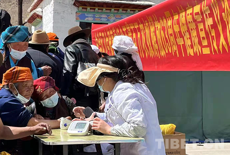 圖為西藏自治區(qū)4家自治區(qū)級(jí)醫(yī)院專家在拉薩市林周縣強(qiáng)嘎鄉(xiāng)為當(dāng)?shù)厝罕娏x診