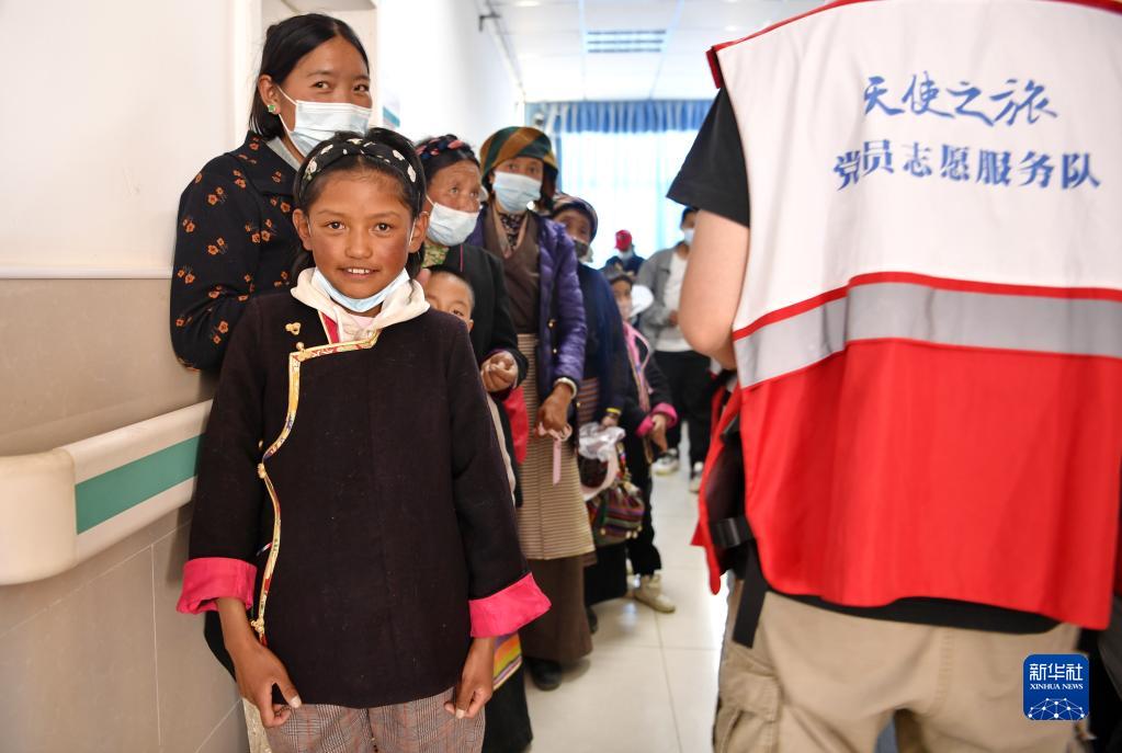 7月9日,西藏山南市浪卡子縣的兒童在家長(zhǎng)陪伴下到縣人民醫(yī)院接受先心病篩查。新華社記者 張汝鋒 攝