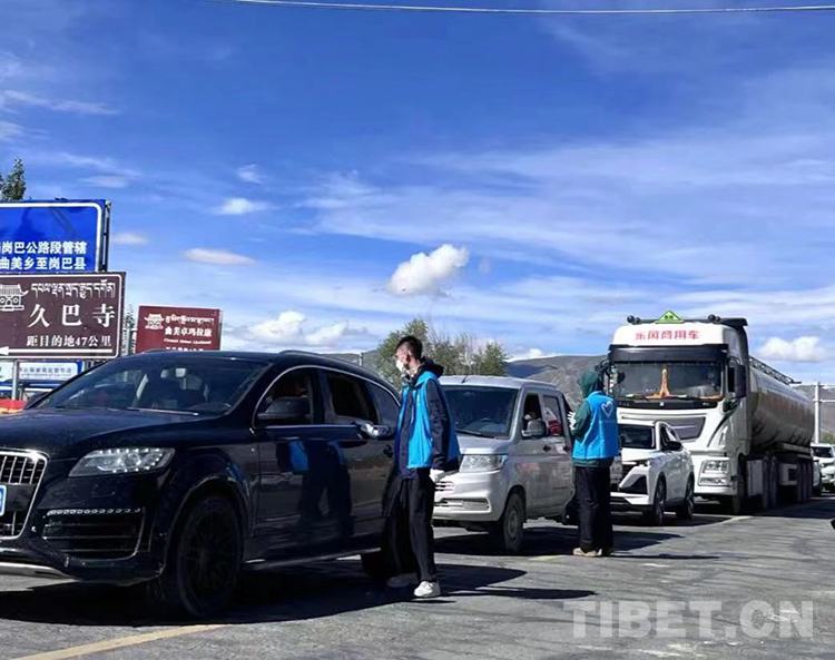 圖為志愿者在西藏自治區(qū)昌都市八宿縣參與當?shù)匾咔榉揽毓ぷ?/p>