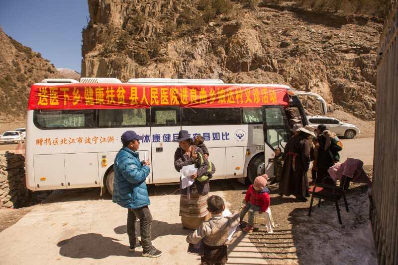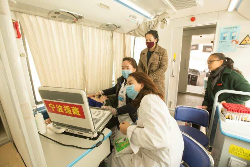 一輛八米多長(zhǎng)的農(nóng)牧民健康體檢車(chē)按照年度計(jì)劃,穿梭于比如縣的大小鄉(xiāng)村。車(chē)上載有先進(jìn)的DR(數(shù)字影像攝片機(jī))、便攜彩超機(jī)、心電圖機(jī)、便攜檢驗(yàn)設(shè)備。這臺(tái)車(chē)是浙江省援藏副指揮長(zhǎng)、比如縣委常務(wù)副書(shū)記盛悠聯(lián)系寧波市江北區(qū)政府捐贈(zèng)的。在第八批寧波紹興援藏工作組干部的精心設(shè)計(jì)下,專(zhuān)門(mén)向宇通公司定制的一輛功能齊全的大巴體檢車(chē),光車(chē)底和改裝費(fèi)用就達(dá)73萬(wàn)元。它與普通體檢車(chē)需要接入停泊地市電、自來(lái)水才能運(yùn)行不同,寧波的援藏干部根據(jù)西藏鄉(xiāng)村缺電少水的現(xiàn)狀,多方咨詢(xún)方案,最后增加了價(jià)值十萬(wàn)元的高壓電容設(shè)備,實(shí)現(xiàn)了通過(guò)車(chē)載的小型發(fā)電機(jī)帶動(dòng)50千瓦的DR,并可連續(xù)運(yùn)轉(zhuǎn),這在全國(guó)尚屬首例。車(chē)上還配備主動(dòng)式抽水泵,解決上水問(wèn)題,并配有空調(diào)系統(tǒng)。車(chē)子開(kāi)到哪里,便可不靠外力,進(jìn)行包括拍攝X光片、彩超、心電、檢驗(yàn)等的全面健康體檢,許多鄉(xiāng)鎮(zhèn)衛(wèi)生院也不如這輛體檢車(chē)的配置強(qiáng)大。