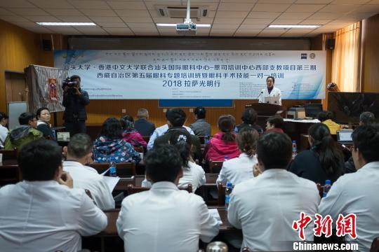 圖為由汕頭大學香港中文大學聯(lián)合汕頭國際眼科中心舉辦的西藏自治區(qū)第五屆眼科專題培訓班暨2018“拉薩光明行”項目在西藏自治區(qū)藏醫(yī)院啟動。 何蓬磊 攝