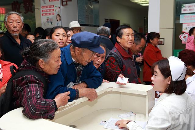 圖為當?shù)厝罕娫阢氪h中醫(yī)醫(yī)院義診點排隊掛號。