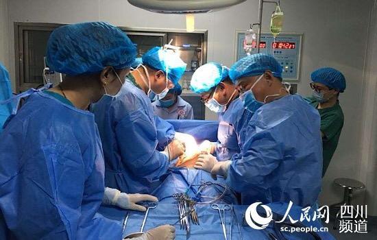 手術(shù)在成都市二醫(yī)院醫(yī)生孫科的指導(dǎo)下,同甘孜縣人民醫(yī)院院長(zhǎng)周林勇、急診科達(dá)娃恩珠主任共同協(xié)作,迅速打開患者腹腔,左半肝浸潤(rùn)在一片血海中,破口處還在不停滲血。不到一小時(shí)手術(shù)順利結(jié)束,破裂的左半肝被順利切除。