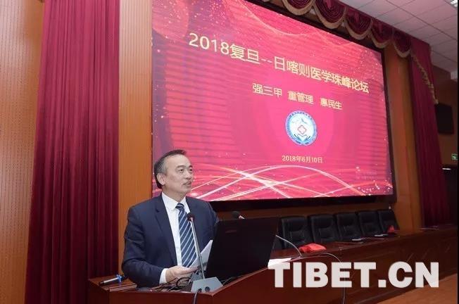 圖為復(fù)旦大學(xué)黨委副書記袁正宏出席復(fù)旦-日喀則醫(yī)學(xué)高峰論壇并致辭。日喀則市人民醫(yī)院供圖