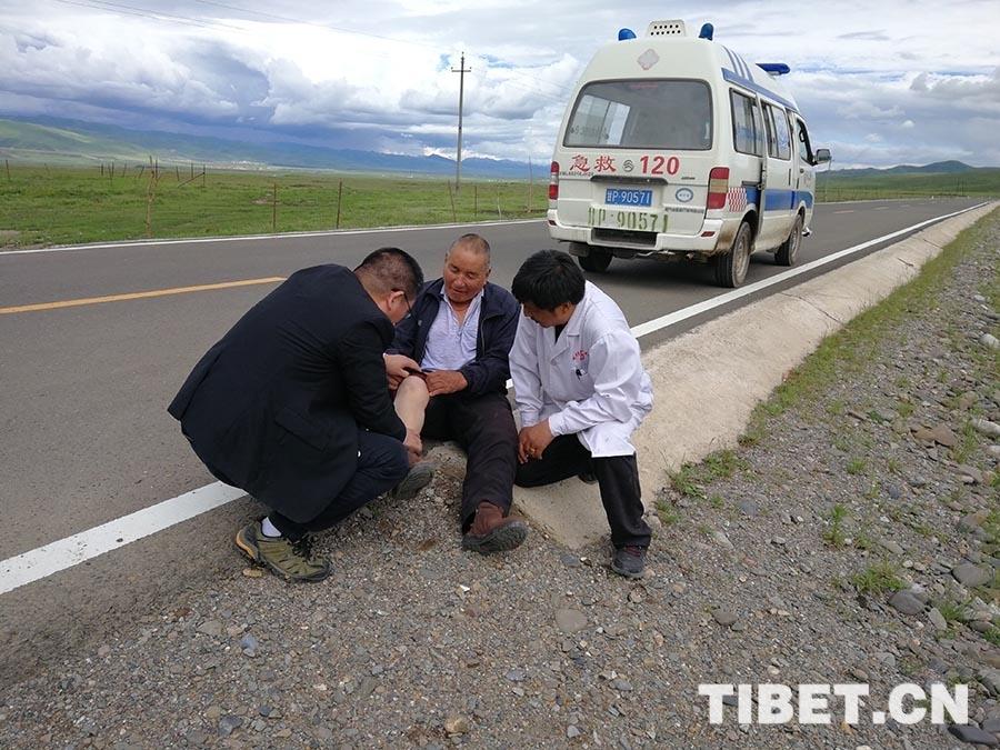 老人說自己的膝關(guān)節(jié)總是會(huì)疼,剛才在路邊站了一個(gè)多小時(shí),腫脹疼痛更加嚴(yán)重。看到這種情況,來自北京市昌平區(qū)醫(yī)院的骨科主任王現(xiàn)海立即在公路邊開始診治。詢問病史及進(jìn)行體格檢查后,醫(yī)生診斷為右膝關(guān)節(jié)骨性關(guān)節(jié)炎。隨后與歐拉秀瑪鄉(xiāng)衛(wèi)生院院長(zhǎng)楊河軍及其他專家一起將老人抬上救護(hù)車,讓他躺在救護(hù)車的擔(dān)架上,進(jìn)行了腰椎及髖關(guān)節(jié)的體檢,排除了腰椎及髖部疾患的可能。王現(xiàn)海輔導(dǎo)老人進(jìn)行針對(duì)膝關(guān)節(jié)骨性關(guān)節(jié)炎的康復(fù)鍛煉,建議其口服消炎止痛類藥物,并到上級(jí)醫(yī)院進(jìn)一步檢查明確病情。老人連忙稱謝。