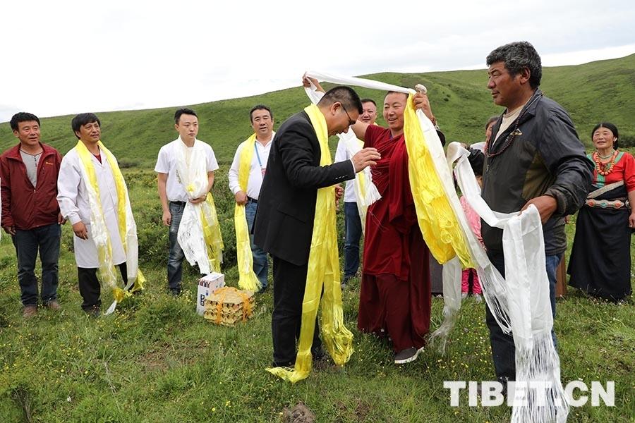 穿過一條條小溪來到山腰處才讓的家,他們一家向?qū)<覉F(tuán)隊(duì)敬獻(xiàn)了哈達(dá)。王現(xiàn)海與延慶區(qū)延慶鎮(zhèn)社區(qū)衛(wèi)生服務(wù)中心院長(zhǎng)史武軍、延慶區(qū)康莊鎮(zhèn)社區(qū)衛(wèi)生服務(wù)中心院長(zhǎng)萬愛民分別向才讓拉毛各捐贈(zèng)助學(xué)金1000元。臨行前才讓家人又向?qū)<覉F(tuán)隊(duì)成員送上當(dāng)?shù)氐乃钟秃汪佤巍?/p>