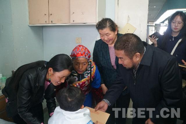 圖為甘南藏族自治州政協(xié)原副主席丁目迪給中日友好醫(yī)院的患兒送上慰問(wèn)金。攝影:孫健