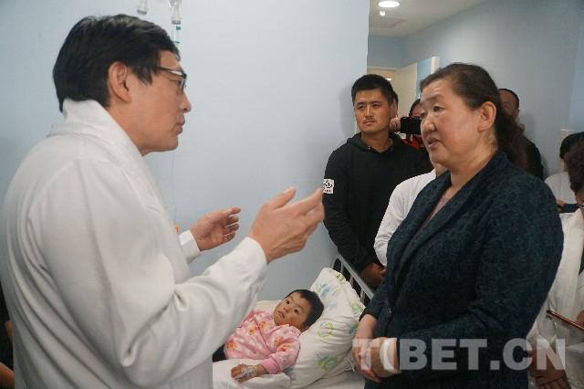 圖為各位領(lǐng)導(dǎo)在中日友好醫(yī)院看望來(lái)自甘南卓尼縣的患兒蘇奴刀旦。攝影:孫健