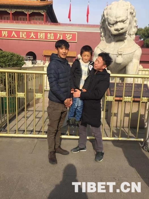 圖為丁子扎西父子在天安門(mén)前。 圖片由丁子扎西提供。