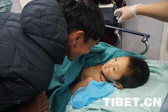 雖然心里十分擔(dān)憂(yōu),但是丁子扎西在兒子面前表現(xiàn)得盡量輕松?!拔液蛢鹤诱f(shuō)好了,手術(shù)沒(méi)什么大不了的,不能哭,睡一會(huì)兒就出來(lái)了?!边M(jìn)手術(shù)室前,這個(gè)樂(lè)天派的爸爸還在跟孩子開(kāi)玩笑,但是等待手術(shù)的過(guò)程卻是無(wú)比煎熬,他在手術(shù)室門(mén)口不停地走來(lái)走去,每當(dāng)出來(lái)一位患者都會(huì)跑過(guò)去看看是不是自己的兒子。