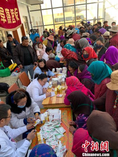 圖為西藏阜康醫(yī)院派出醫(yī)療團(tuán)隊(duì)到嘉黎縣夏瑪鄉(xiāng)衛(wèi)生院為當(dāng)?shù)剞r(nóng)牧民義診。阜康醫(yī)院供圖