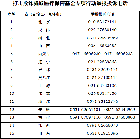 人民健康從國(guó)家醫(yī)保局獲悉,醫(yī)保局首次設(shè)立了國(guó)家級(jí)打擊欺詐騙取醫(yī)療保障基金專項(xiàng)行動(dòng)舉報(bào)電話,并要求各地醫(yī)保部門建立舉報(bào)獎(jiǎng)勵(lì)機(jī)制,同時(shí)對(duì)舉報(bào)嚴(yán)格保密,保護(hù)舉報(bào)人的合法權(quán)益。以群眾舉報(bào)為重點(diǎn)線索,結(jié)合醫(yī)保智能監(jiān)控、大數(shù)據(jù)分析、開(kāi)展暗訪等方式,精準(zhǔn)鎖定目標(biāo),嚴(yán)厲打擊違法違規(guī)行為。目前全國(guó)各級(jí)32個(gè)“回頭看”舉報(bào)投訴電話已全面開(kāi)通(文末附目錄)。