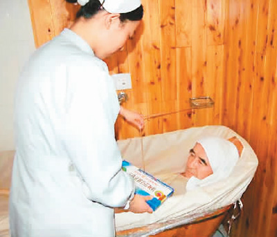 中國藏學(xué)研究中心北京藏醫(yī)院,一位患者正在接受藏醫(yī)藥浴法治療。孫文敏攝