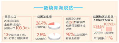 黨的十八大以來,青海省認真貫徹落實習近平總書記關于扶貧工作的重要論述,把脫貧攻堅作為第一民生來抓,始終堅持精準扶貧精準脫貧基本方略,緊緊圍繞“扶持誰”“誰來扶”“怎么扶”,全力推進黨中央決策部署落實落地。著力抓好作風建設,強化五級書記抓扶貧,層層壓實責任,讓干部沉下去,使工作實起來,補齊黨員干部在認識、感情、能力、作風上的短板。聚焦深度貧困地區(qū),加大政策資金投入力度,堅持“挪窮窩”與“換窮業(yè)”并舉。圍繞增強貧困地區(qū)和貧困群眾造血功能這個根本性問題,加強產業(yè)幫扶、技能培訓力度,確保貧困群眾持續(xù)穩(wěn)定增收。著力補齊基礎設施和公共服務領域短板,行業(yè)部門多方聯(lián)動、協(xié)同作戰(zhàn),累計投入行業(yè)扶貧資金157.7億元,深入實施十個行業(yè)扶貧專項行動。