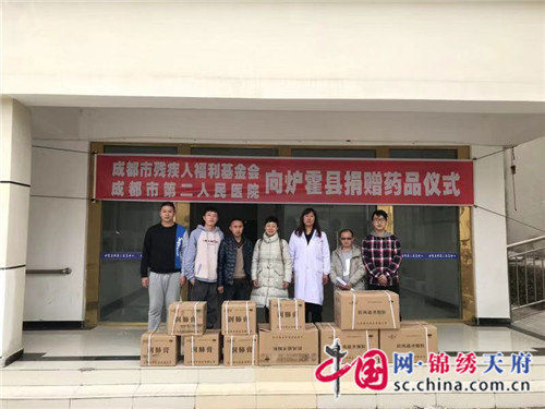 為積極響應(yīng)、貫徹落實(shí)成都市第二人民醫(yī)院精準(zhǔn)扶貧戰(zhàn)略,充分發(fā)揮援藏干部溝通協(xié)調(diào)的作用,積極引導(dǎo)社會(huì)組織和其他力量出資出智積極參與精準(zhǔn)扶貧活動(dòng),在該院領(lǐng)導(dǎo)的安排部署及幫助下,陳博言、丁一和吳科三人利用回成都開(kāi)會(huì)學(xué)習(xí)的機(jī)會(huì)到成都市殘疾人福利基金會(huì)尋求公益幫助,通過(guò)多次向成都市殘聯(lián)福利基金會(huì)廖國(guó)龍理事長(zhǎng)匯報(bào)當(dāng)?shù)孛撠毠?jiān)工作與形勢(shì),成功獲得福利基金會(huì)捐贈(zèng)的51件價(jià)值227000元的藥品,其中包括通圣防風(fēng)顆粒24件,潤(rùn)肺膏27件,并由成都市第二人民醫(yī)院會(huì)同成都市殘聯(lián)福利基金會(huì)攜手聯(lián)合于2019年3月12日當(dāng)天順利交接給爐霍縣醫(yī)院,用于發(fā)放給爐霍縣十六個(gè)鄉(xiāng)鎮(zhèn)的老百姓。