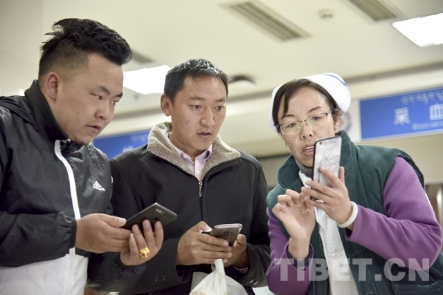圖為一名前來(lái)就診的群眾在西藏自治區(qū)人民醫(yī)院使用手機(jī)微信掛號(hào)。