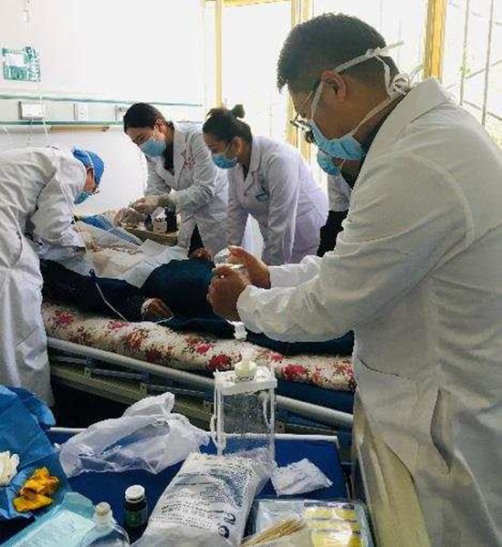手術(shù)不算復(fù)雜,但崗巴縣醫(yī)護(hù)人員相關(guān)操作經(jīng)驗(yàn)相對缺乏,高原又是氣胸的誘發(fā)因素之一,所以該技術(shù)有很強(qiáng)的適應(yīng)性,在關(guān)鍵時(shí)刻能及時(shí)挽救患者的生命。因此,醫(yī)療隊(duì)在手術(shù)過程中還注意承擔(dān)起對當(dāng)?shù)蒯t(yī)生的教學(xué)工作。醫(yī)療隊(duì)在手術(shù)過程中仔細(xì)講解注意點(diǎn),包括切開置管的位置,如何最大程度避免血管損傷、導(dǎo)管固定、觀察引流瓶情況等,耐心指導(dǎo)當(dāng)?shù)蒯t(yī)生幫助他們掌握相關(guān)技術(shù),即便日后援藏專家不在也能夠獨(dú)立開展,將“輸血”轉(zhuǎn)化為“造血”。