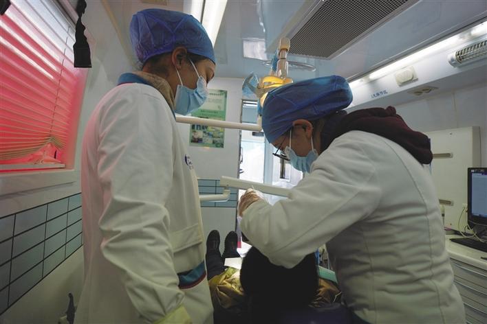 上午9點半,義診車輛到達沖賽康社區(qū)居委會附近,居民們有序排起了長隊,等待接受檢查?,F場,醫(yī)務人員仔細為每一位居民檢查口腔,耐心細致地講解口腔保健、牙病預防等方面的口腔知識,并有針對性地為居民提出治療建議。
