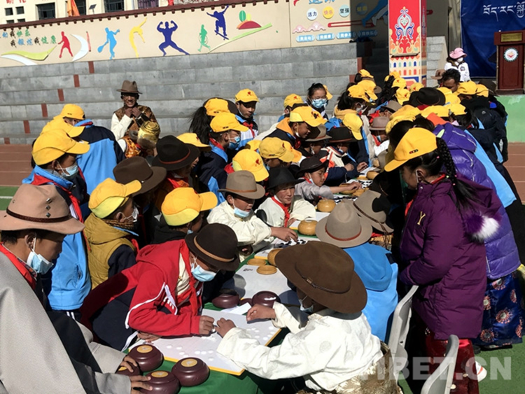 圖為2021年西藏自治區(qū)“體育項目進(jìn)校園”活動暨拉薩市堆龍德慶區(qū)古榮鎮(zhèn)中心小學(xué)藏棋比賽活動現(xiàn)場 攝影:次旦拉姆