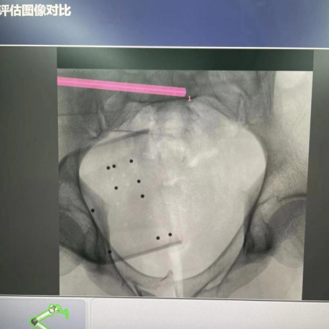 據(jù)了解,患者37歲,為高墜傷患者,入院合并顱腦挫傷、盆腔臟器出血、骨盆骨折多發(fā)傷患者。為最大限度降低手術風險,同時給予患者滿意的手術療效,術前綜合評估患者病情,擬定行“天璣機器人”輔助定位下骨盆骨折微創(chuàng)手術。2月13日10時,手術正式開始。拉薩市人民醫(yī)院采集患者術中二維影像,通過骨科手術機器人擬定螺釘打入位置方向后,吳宏華主任完成手術設計,成功為該患者置入了一顆高難度骶髂螺釘,出血5ml,切口1cm。術后圖像顯示,螺釘位置及方向完全符合手術規(guī)劃,沒有一絲偏差,手術最終獲得圓滿成功。