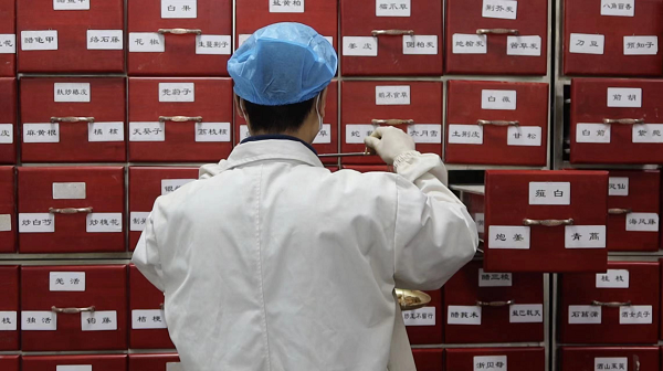 小鹿中醫(yī)調(diào)劑中心的藥師正在為患者抓藥