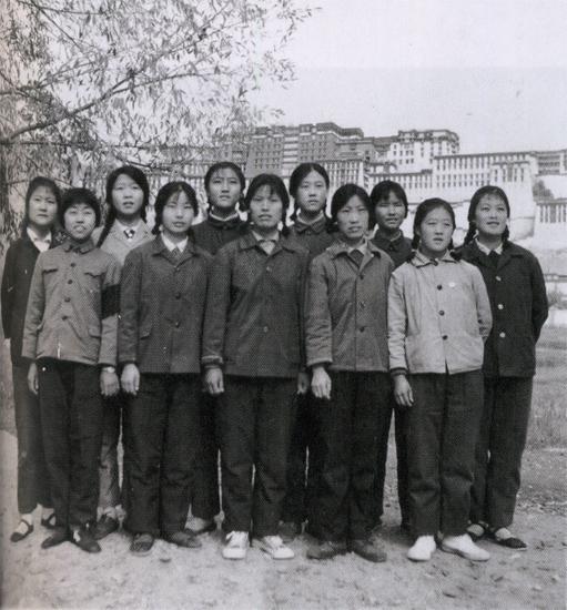 1976年10月來到拉薩,和山東女同學(xué) 在布達拉宮前合影。左后一為作者。攝影/陳宗烈 沈晶