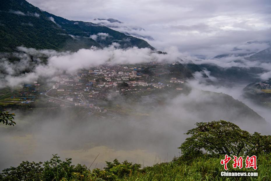 圖為云霧繚繞的墨脫縣城。何蓬磊 攝