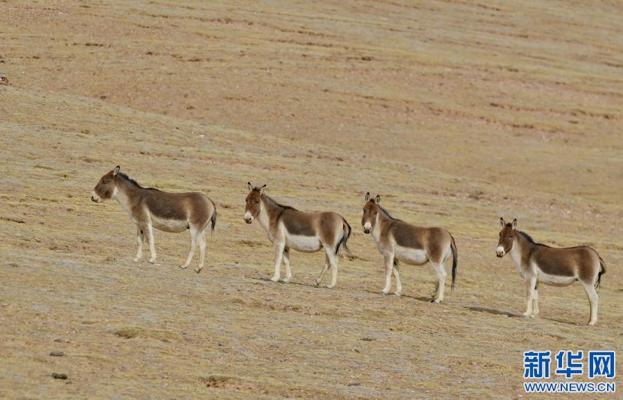 藏北高原上的藏野驢(1月16日攝)。新華社記者 張汝鋒 攝