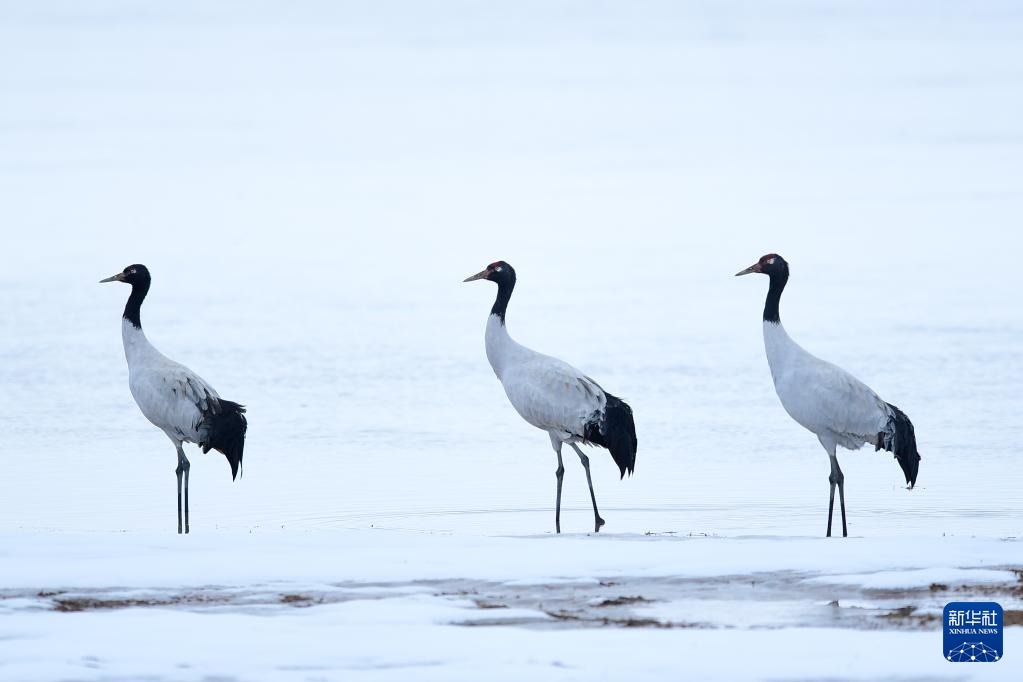 近日,在位于青海省果洛藏族自治州瑪多縣的三江源國家公園黃河源園區(qū)內(nèi),數(shù)只黑頸鶴在此棲息覓食。 黑頸鶴是國家一級重點保護野生動物,主要棲息于海拔2500米至5000米的高原沼澤地、湖泊及河灘地帶,在我國主要分布在青海、西藏、甘肅和四川北部一帶。