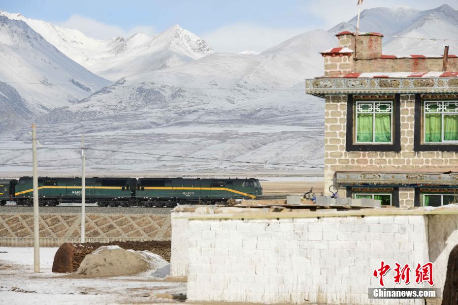 圖為一輛火車從當(dāng)雄縣阿熱濕地牧民家前經(jīng)過。 貢嘎來松 攝