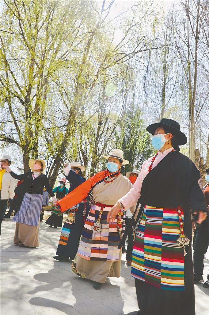 經(jīng)過春意潤(rùn)染的城市,處處呈現(xiàn)出純凈明朗的美。布達(dá)拉宮的金頂反射著耀眼的金光,布達(dá)拉宮廣場(chǎng)前綠草茵茵,人工湖旁的垂柳被和煦的春風(fēng)吹得飄飄揚(yáng)揚(yáng),羅布林卡里的古樹也開始抽出鮮嫩的枝葉,繁華的八廓街上,三五成群的轉(zhuǎn)經(jīng)老人坐在路邊歇息……