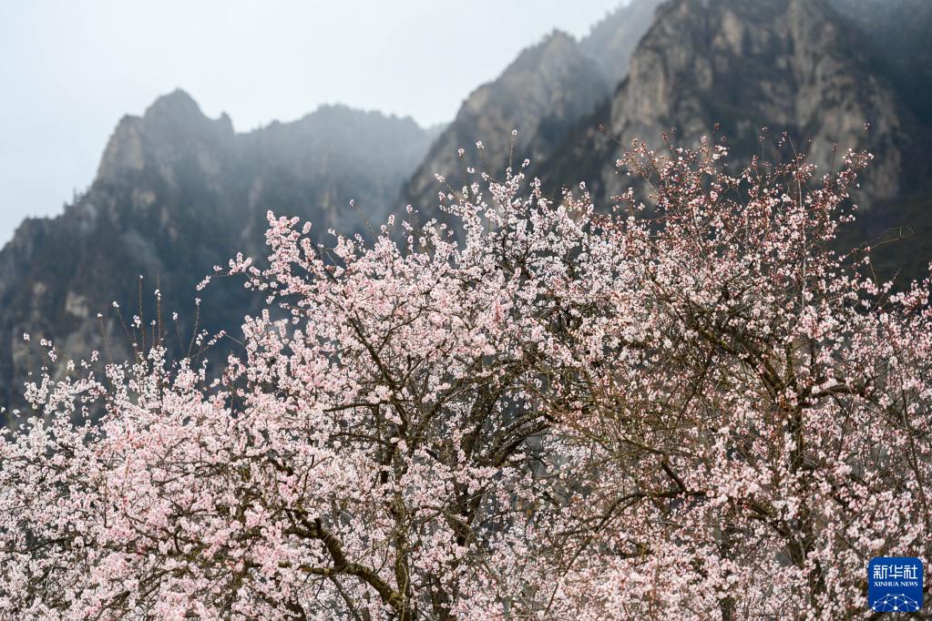 這是在那曲市嘉黎縣尼屋鄉(xiāng)拍攝的桃花(3月31日攝)。新華社記者 周荻瀟 攝