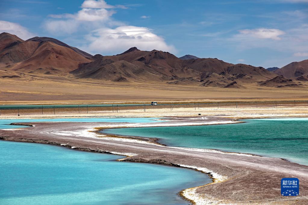 這是位于西藏自治區(qū)阿里地區(qū)改則縣的物瑪錯,湖水呈現出不同顏色(2022年4月12日攝)。新華社記者 姜帆 攝