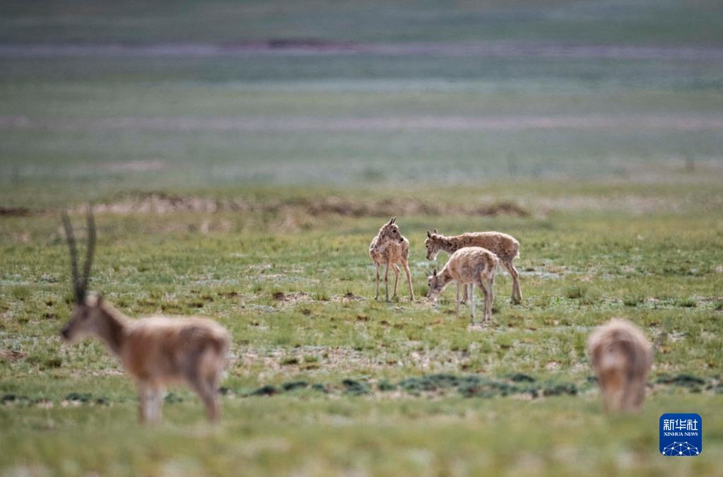 這是在羌塘國家級自然保護(hù)區(qū)內(nèi)拍攝的藏羚羊(7月11日攝)。新華社記者 周荻瀟 攝