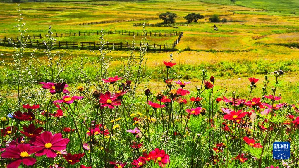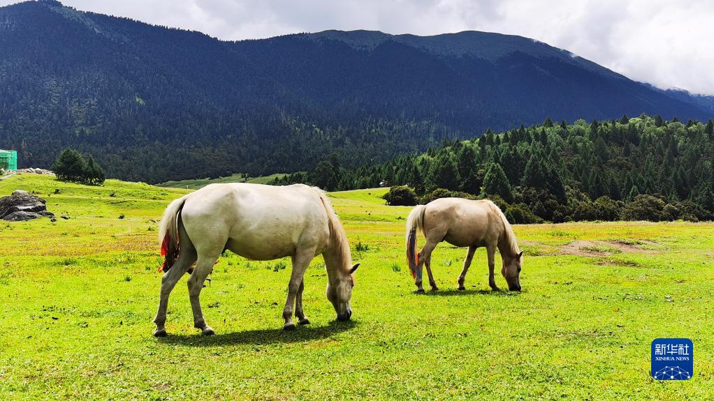 這是魯朗花海牧場景區(qū)(手機(jī)照片,8月6日攝)。新華社記者 沈虹冰 攝
