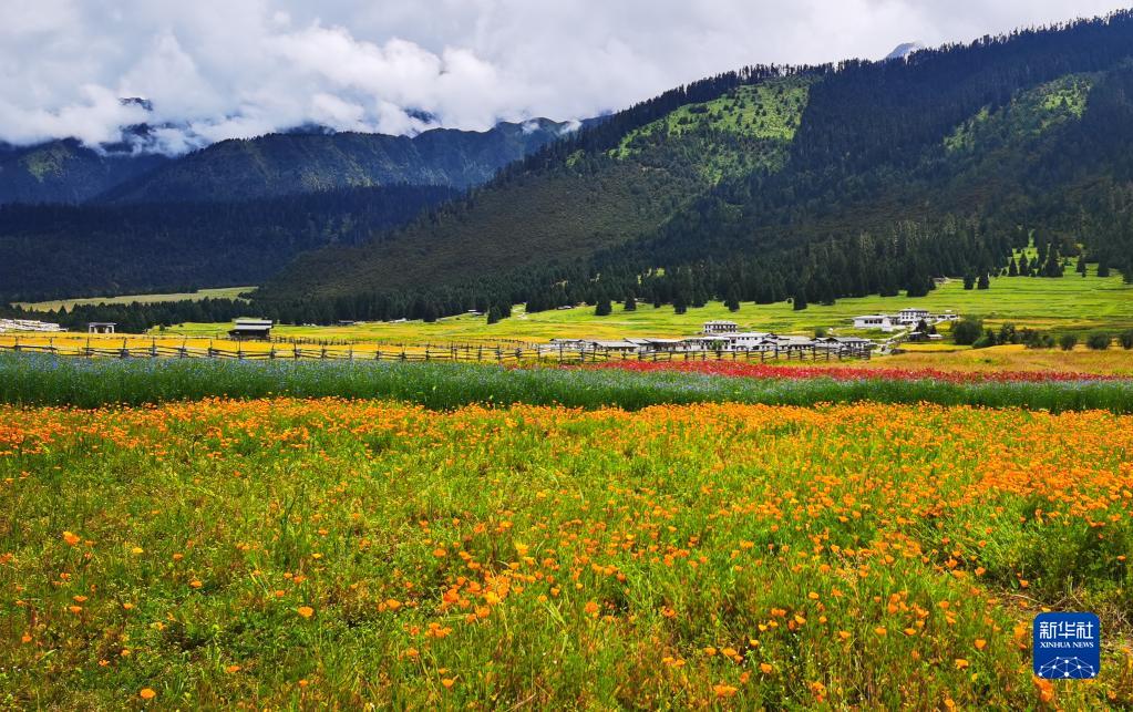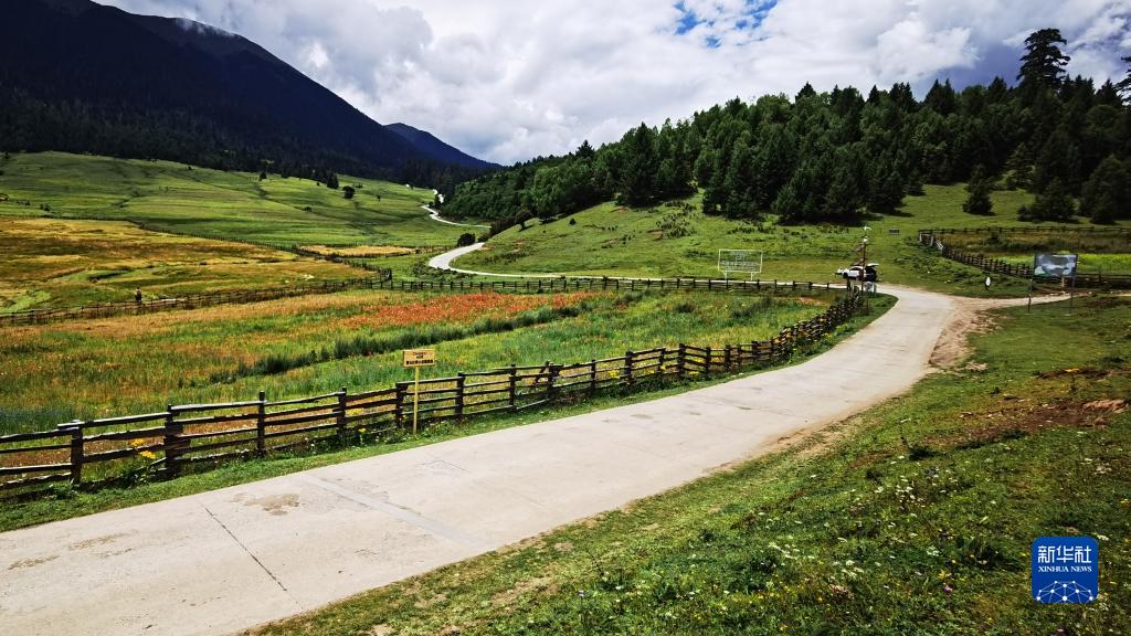 夏日的魯朗鎮(zhèn),溪水潺潺,鮮花盛開,藏式村寨點綴其間,勾畫出一幅恬靜、優(yōu)美的“高原山居圖”。