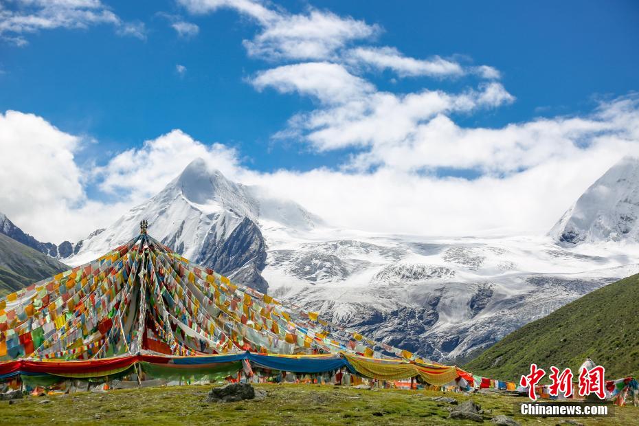 8月27日,記者在西藏那曲市比如縣拍攝到薩普雪山美景。薩普因雪豹而得名,位于比如縣羊秀鄉(xiāng)普宗溝內(nèi),全稱薩普貢拉嘎布。主峰色浦崗日海拔6996米,是喜馬拉雅山主峰北部的念青唐古拉山脈東段的最高峰。在薩普山腳有一個(gè)清澈如鏡的湖,全名堆烔薩錯(cuò)查仁,又稱薩木措,是由雪山千年冰雪融化所形成,自山腳延伸,分為兩部分,靠近山腳下的為冰川湖泊,終年不化;另一部分為主湖,湖水碧綠,湖內(nèi)魚(yú)兒成群。