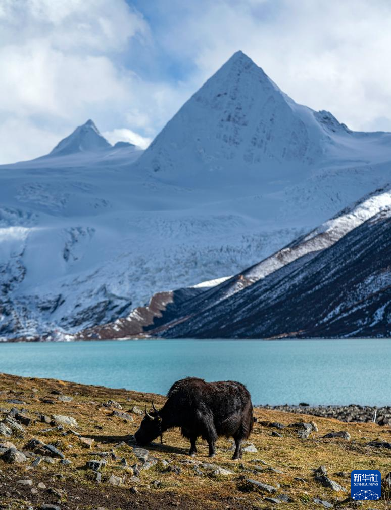 牦牛在薩普雪山腳下的草場上吃草(10月28日攝)。新華社記者 孫非 攝