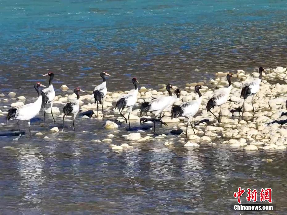 西藏米林迎來(lái)大批黑頸鶴越冬