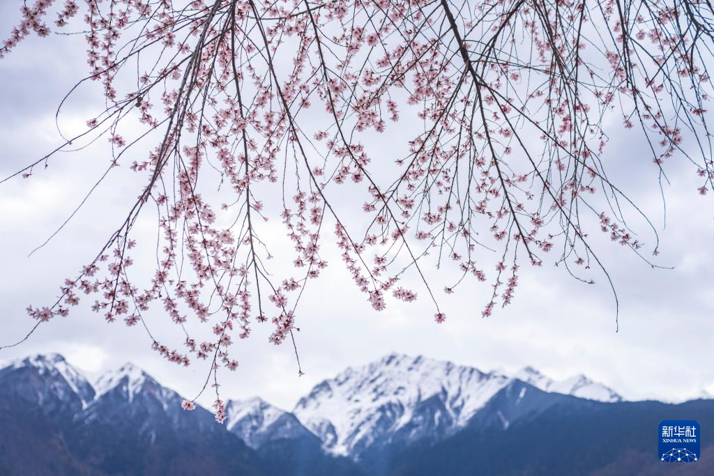 圖為西藏波密縣扎木鎮(zhèn)崗村雪山腳下盛放的桃花。新華網(wǎng)發(fā) 阿旺仁青 攝
