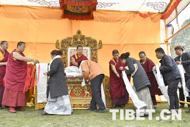 除了騎馬和騎牦牛,十一世班禪更心懷蒼生。從馬上下來(lái)后,十一世班禪為早已等候在此的信教群眾摸頂賜福。信教群眾接受了十一世班禪的摸頂賜福之后,還得到了十一世班禪的畫像、像章以及紅色金剛結(jié)。(中國(guó)西藏網(wǎng) 記者/王淑)