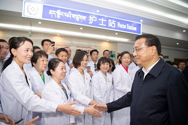 圖為李克強看望援藏醫(yī)護人員。圖片來源:中國政府網(wǎng)
