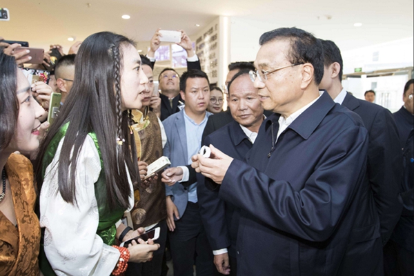 圖為李克強總理來到位于拉薩市柳梧新區(qū)的“柳梧蜂巢+創(chuàng)新中心” 圖片來源:中國政府網(wǎng)