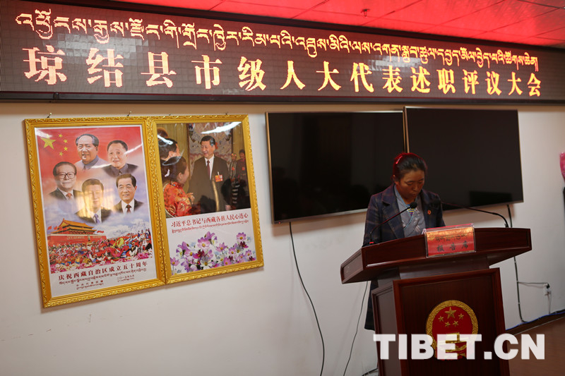 德吉卓嘎代表做述職報(bào)告。
