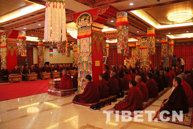 法會(huì)禮請(qǐng)全國(guó)政協(xié)常委、中國(guó)佛教協(xié)會(huì)副會(huì)長(zhǎng)班禪額爾德尼?確吉杰布拈香主法,圓滿完成法會(huì)儀軌。中國(guó)藏語(yǔ)系高級(jí)佛學(xué)院領(lǐng)導(dǎo)、經(jīng)師、學(xué)員及宗教界教職員工約130余人參加法會(huì)。