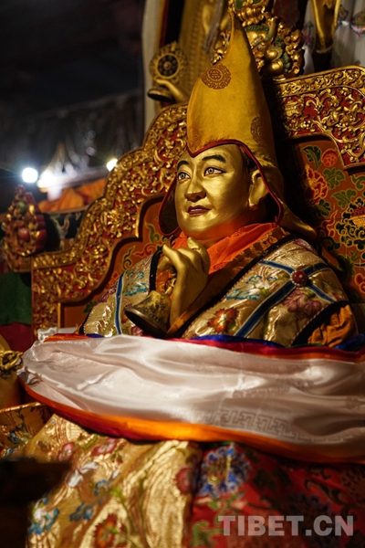圖為大昭寺主殿內(nèi)的十世班禪大師塑像 攝影:王淑