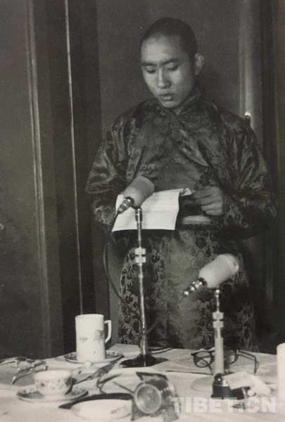 圖為1955年3月9日 十世班禪大師在國(guó)務(wù)院全體會(huì)議第七次會(huì)議上發(fā)言。翻拍自《班禪額爾德尼評(píng)傳》