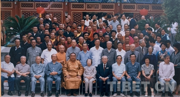 圖為參加中國(guó)藏語(yǔ)系高級(jí)佛學(xué)院成立大會(huì)的全體領(lǐng)導(dǎo)與師生合影。